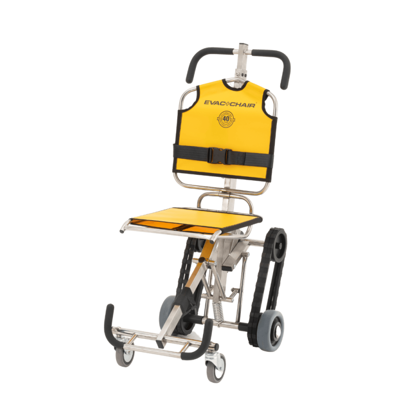 The Ibex is a robust two-person operation evacuation chair with a payload capacity of 159kg, suitable for spiral and narrow staircases.