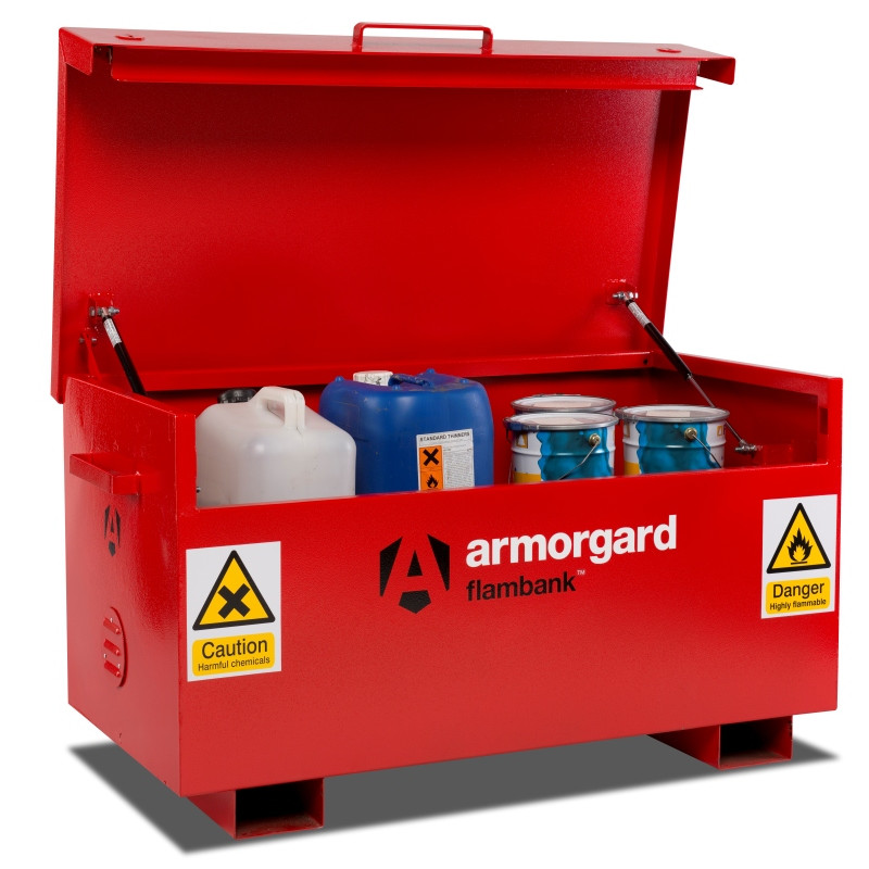 As well as exposing individuals to possible risk, failure to comply with regulations relating to the Control of Substances Hazardous to Health (COSHH) is an offence under the Health and Safety at Work Act 1974. Built to the same high specification as our renowned TuffBank™ Armorgard FlamBank™ is specially designed to comply with relevant COSHH regulations, ensuring that your hazardous substances are securely protected 24/7. Available in 7 sizes, the FlamBank™ is ideal for use on construction sites, in factories and vehicles.