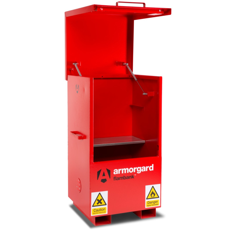 As well as exposing individuals to possible risk, failure to comply with regulations relating to the Control of Substances Hazardous to Health (COSHH) is an offence under the Health and Safety at Work Act 1974. Built to the same high specification as our renowned TuffBank™ Armorgard FlamBank™ is specially designed to comply with relevant COSHH regulations, ensuring that your hazardous substances are securely protected 24/7. Available in 7 sizes, the FlamBank™ is ideal for use on construction sites, in factories and vehicles.